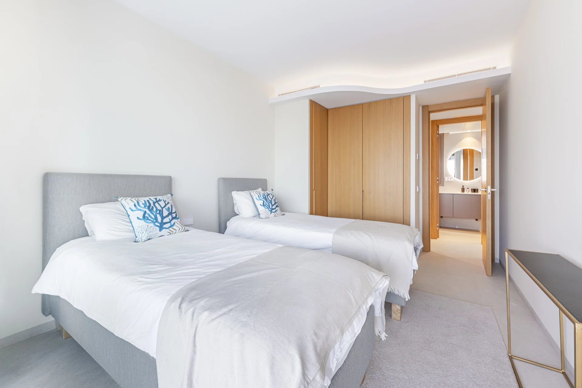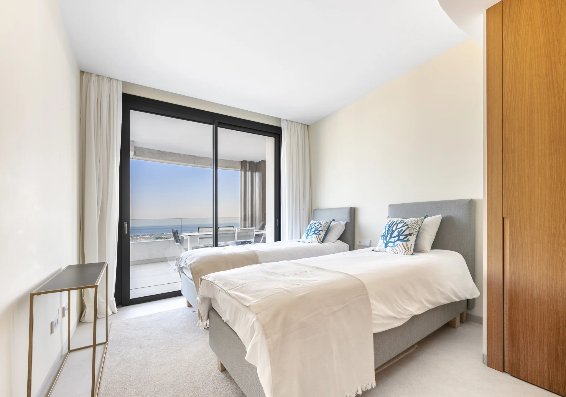 The three bedrooms are designed for comfort and privacy, with views from every room enhancing the sense of light and openness. Every detail has been considered to ensure maximum comfort: zonal air-conditioning, underfloor heating in the bathrooms and high-quality fixtures and finishes throughout. Underground garage space and a dedicated storeroom for added convenience.