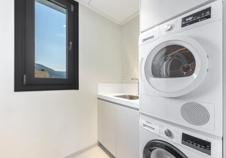 The three bedrooms are designed for comfort and privacy, with views from every room enhancing the sense of light and openness. Every detail has been considered to ensure maximum comfort: zonal air-conditioning, underfloor heating in the bathrooms and high-quality fixtures and finishes throughout. Underground garage space and a dedicated storeroom for added convenience.